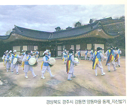 정월 대보름 축제의 백미는 단연 '지신밟기(마당밟기)'다. 마을 농악대가 집집마다 돌며 지신(땅의 신)을 밟아준다. 우리 조상들은 집 안에 성주신(가옥신), 터주신(땅의 신), 조왕신(부엌의 신) 등 다양한 신들이 함께 산다고 믿었다. 지신밟기는 노래와 춤, 악기 연주로 이 가택신들을 위로하고 즐겁게 해주는 예술적 의식이었다.