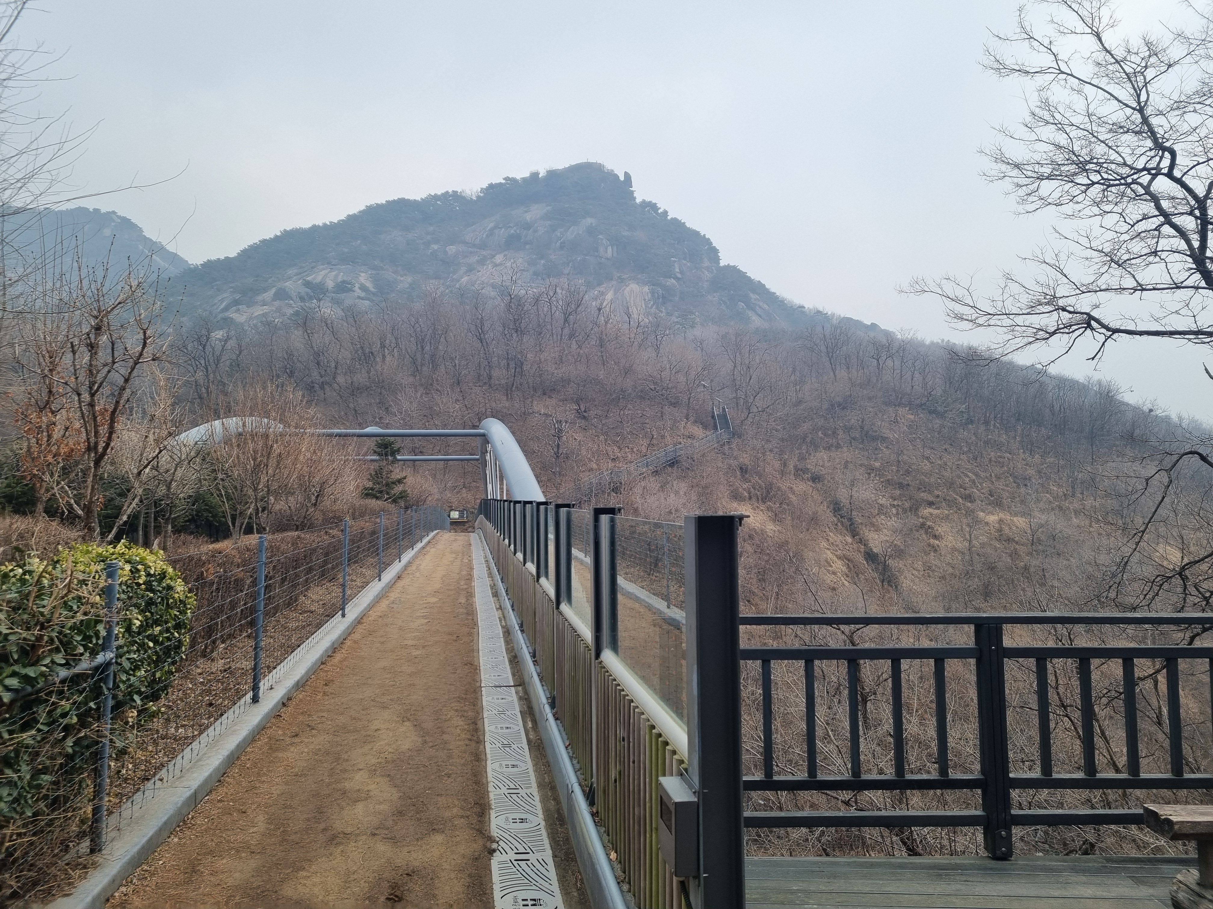 코스는 지하철 3호선 독립문역 5번출구를 나와 무학재하늘다리를 건너 인왕정에 도착한후 해골바위을 지나 서울 성곽길으로 가서 다시 정상으로올라가는 코스를 택해 올라갔다. 날을 흐렸으나 기온은 따뜻했다. 자하문으로 나와 그곳에서 다시 경복궁으로 갔다가 광화문 광장에 도착한후 귀가했다.